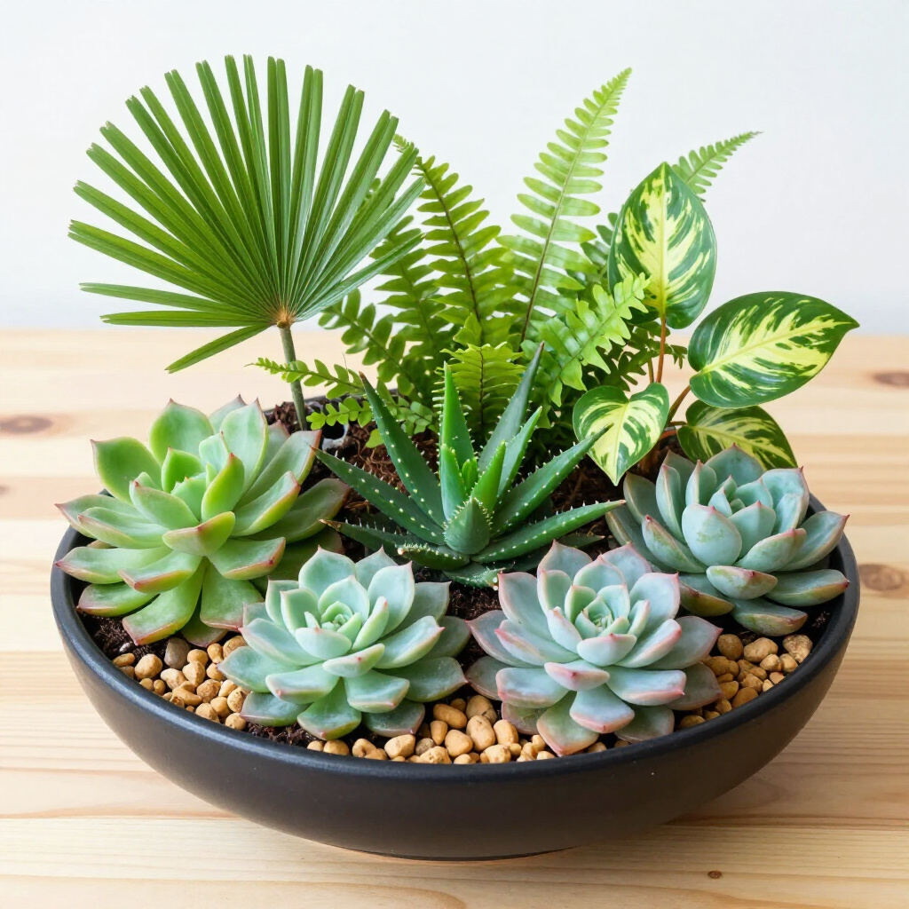 Explore our delightful dish gardens, perfect for adding a touch of greenery to your home or office. These low-maintenance arrangements feature a variety of plants that thrive together, creating a serene and inviting atmosphere.